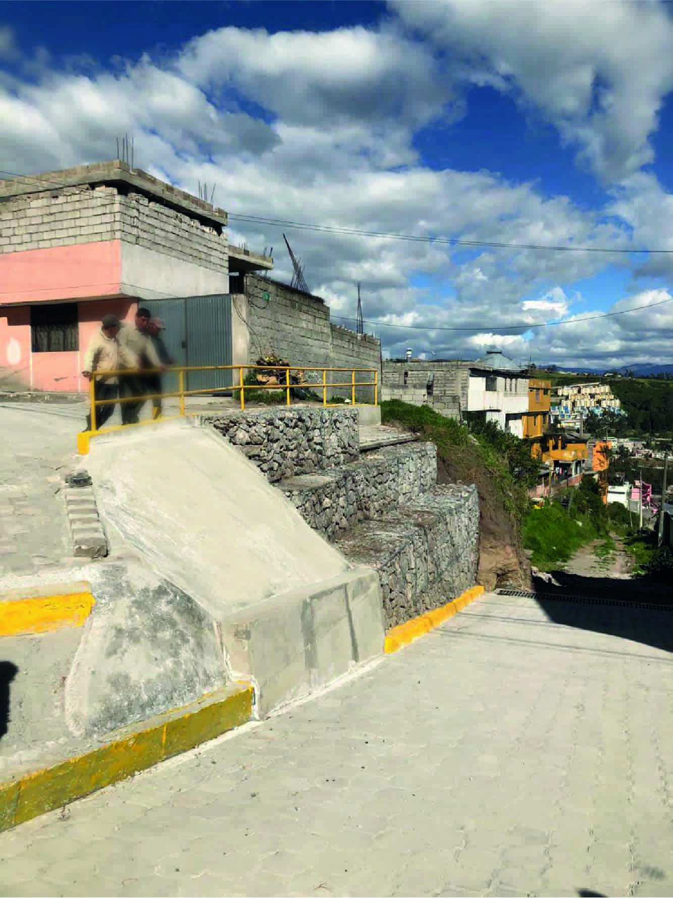 Muro de gaviones de contención para estabilización de pasaje, Barrio Alma Lojana Quito.